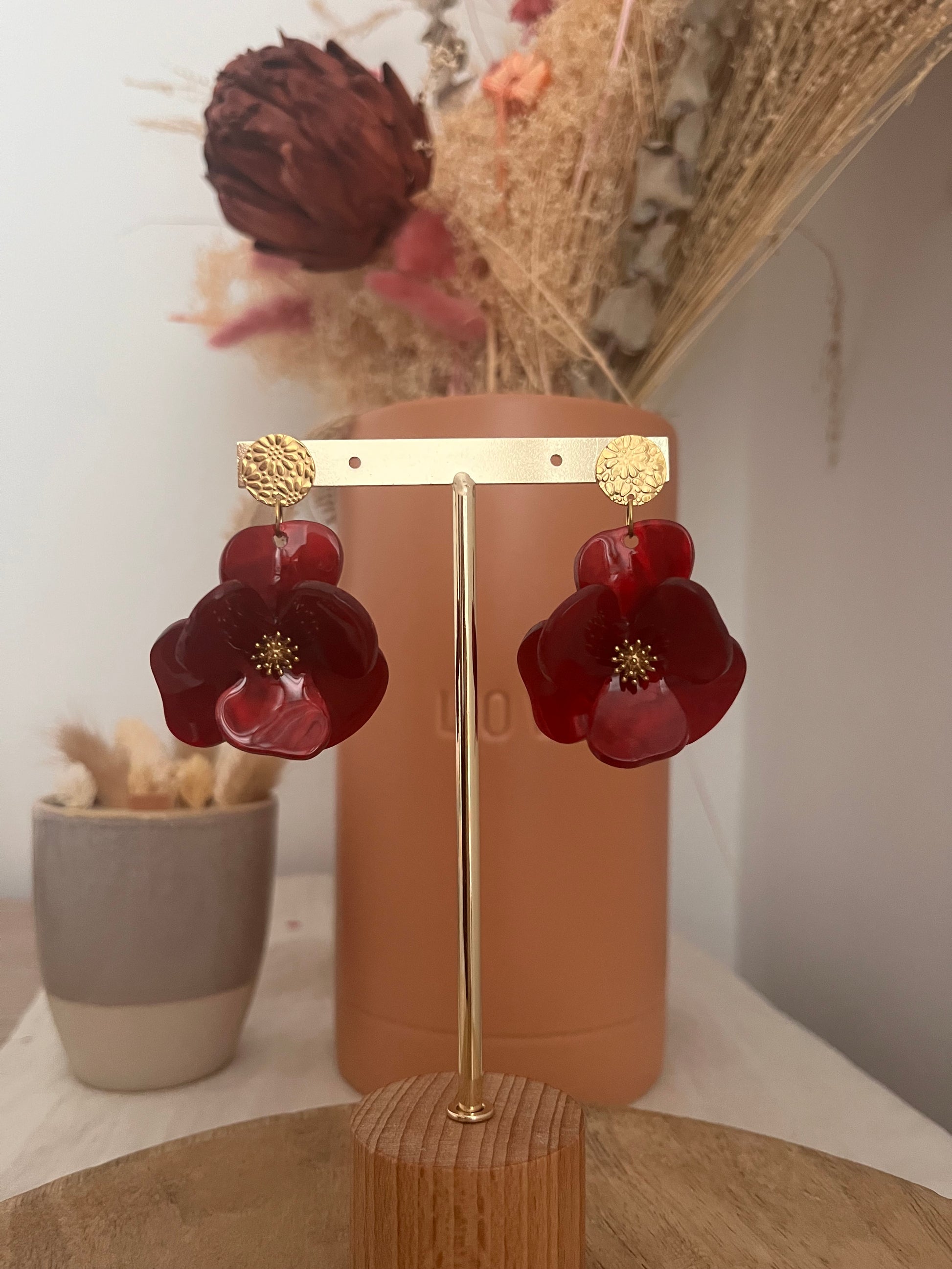 - Pendentif fleur en relief 40mm sur clous d'oreille avec motifs de fleurs